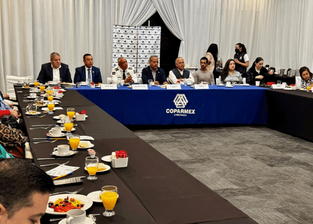 Ensenada, Baja California, a lunes 13 de octubre de 2025.- La Dirección de Seguridad Pública Municipal (DSPM), encabezada por el director Alejandro Monreal Noriega, participó en una mesa de trabajo con integrantes de la Confederación Patronal de la República Mexicana (COPARMEX) Ensenada, en la que también estuvieron presentes el fiscal regional, Miguel Ángel Pérez Rojas, y el fiscal enlace, Sergio Pineda Ortiz, con el objetivo de fortalecer la colaboración interinstitucional y el trabajo conjunto con el sector empresarial.