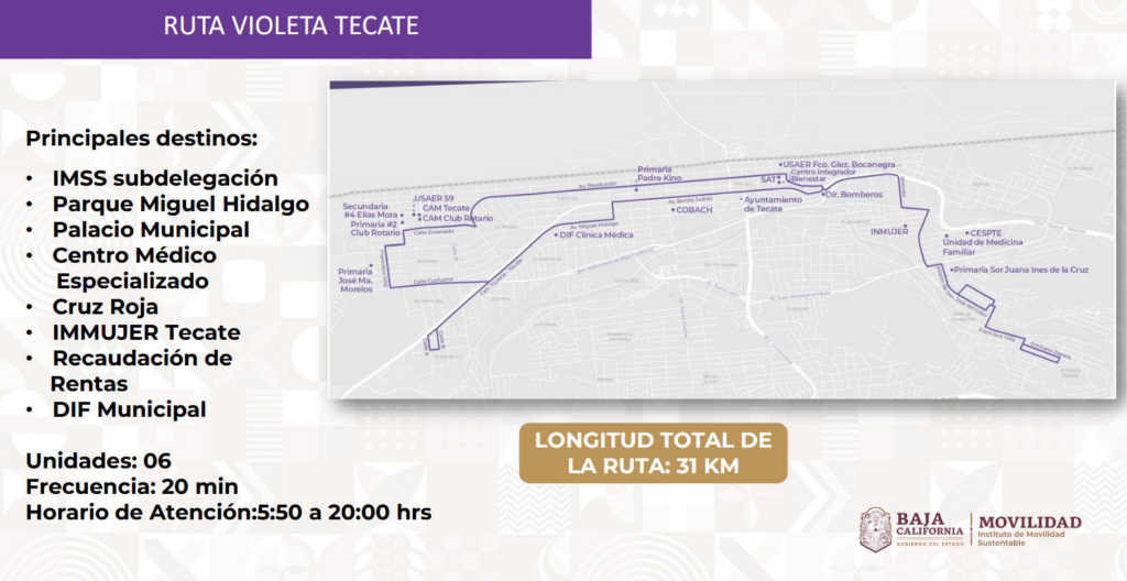 Actualmente en Baja California operan 534 rutas de transporte público que conectan a las y los usuarios desde sus colonias hacia puntos estratégicos como instituciones de salud, centros educativos, oficinas gubernamentales y plazas comerciales, las cuales pueden ser consultadas en las redes sociales oficiales del Instituto de Movilidad Sustentable (IMOS) de la entidad.